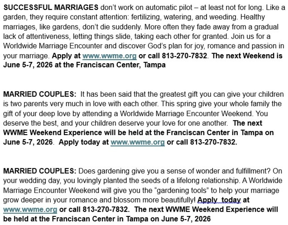 20428 Cortez Blvd., Brooksville FL 34601 • (352)796-2096 • Fax (352)796-7144 • Rev. Paul Pecchie, Pastor